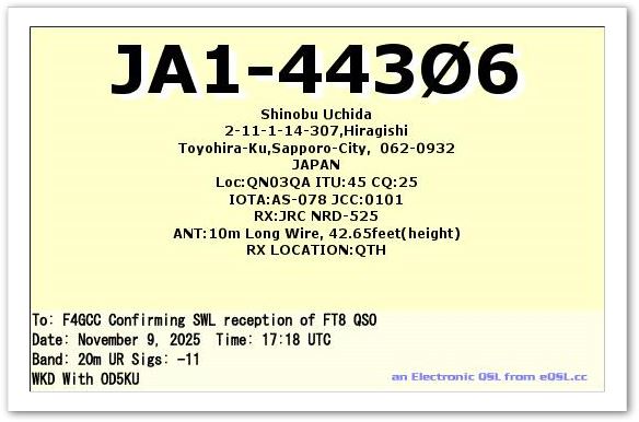 JA1-44306.SWL Japonais reçu par Bernard F4GCC